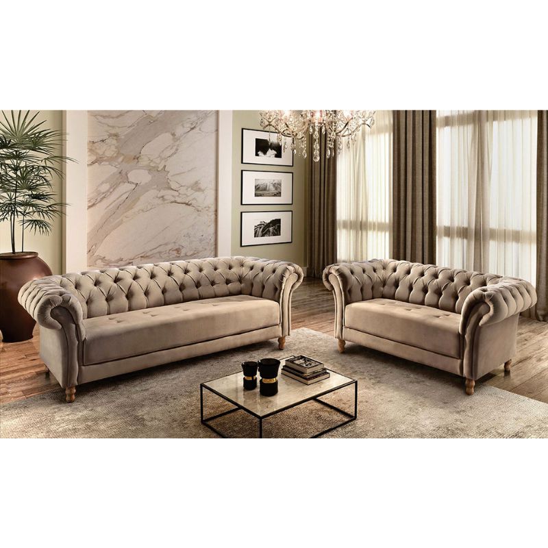 Conjunto estofado 3 e 2 lugares Chile - Tecido veludo marrom RDM