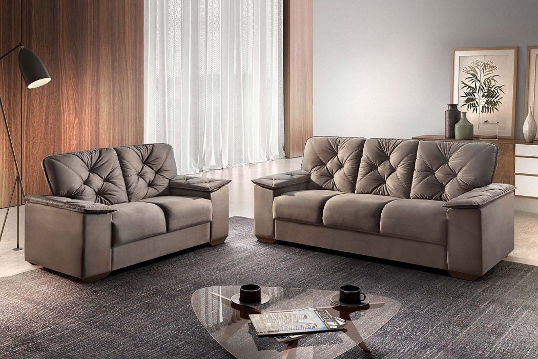 Conjunto estofado 3 e 2 lugares Dakar - Tecido veludo gramado